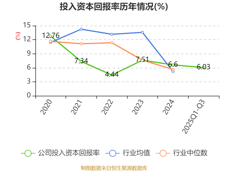盈利能力方面, 2025年前三季度公司加权平均净资产收益率为6.5%,同比上升1.11个百分点。公司2025年前三季度投入资本回报率为6.03%,较上年同期上升1.11个百分点。