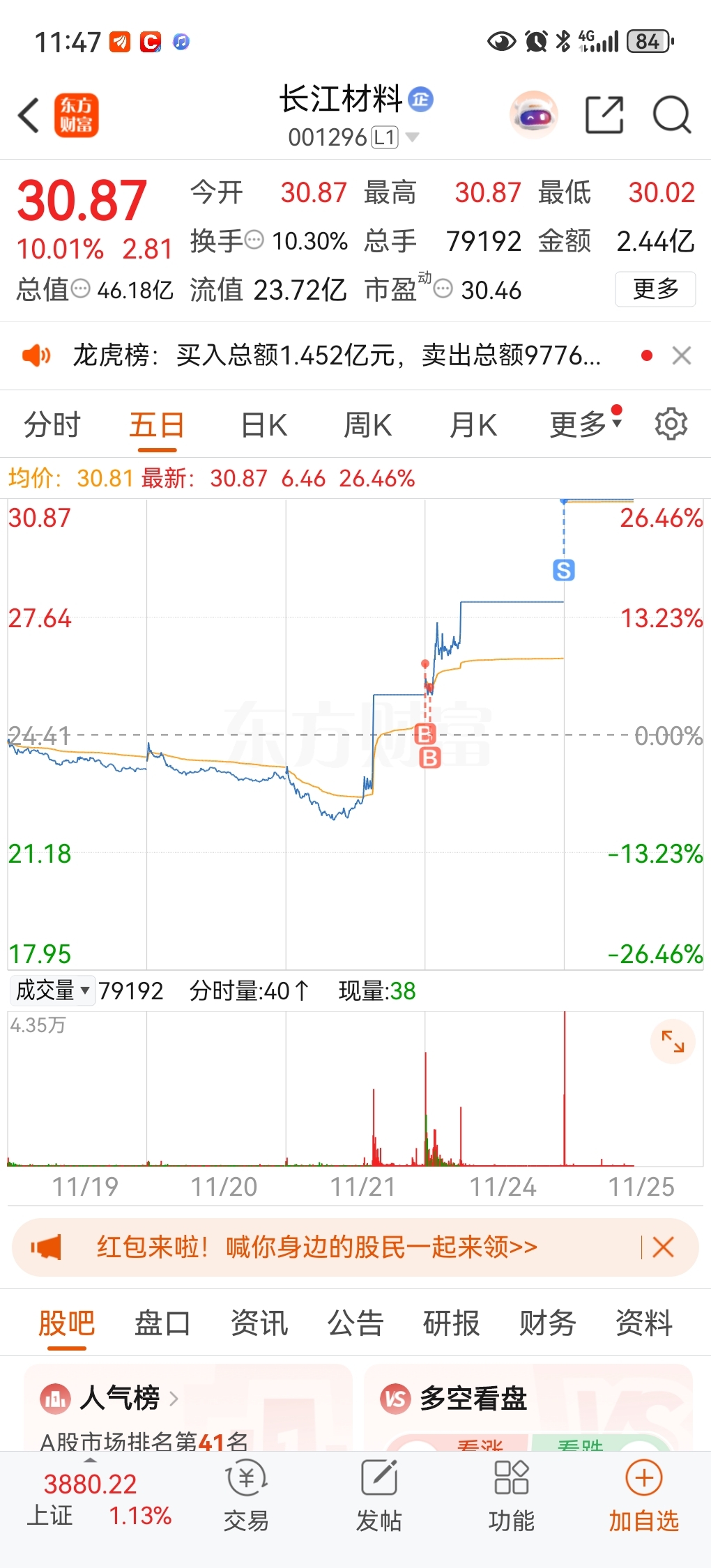 $长江材料(SZ001296)$ 上周梭哈大肉,感觉明天又可以梭哈了