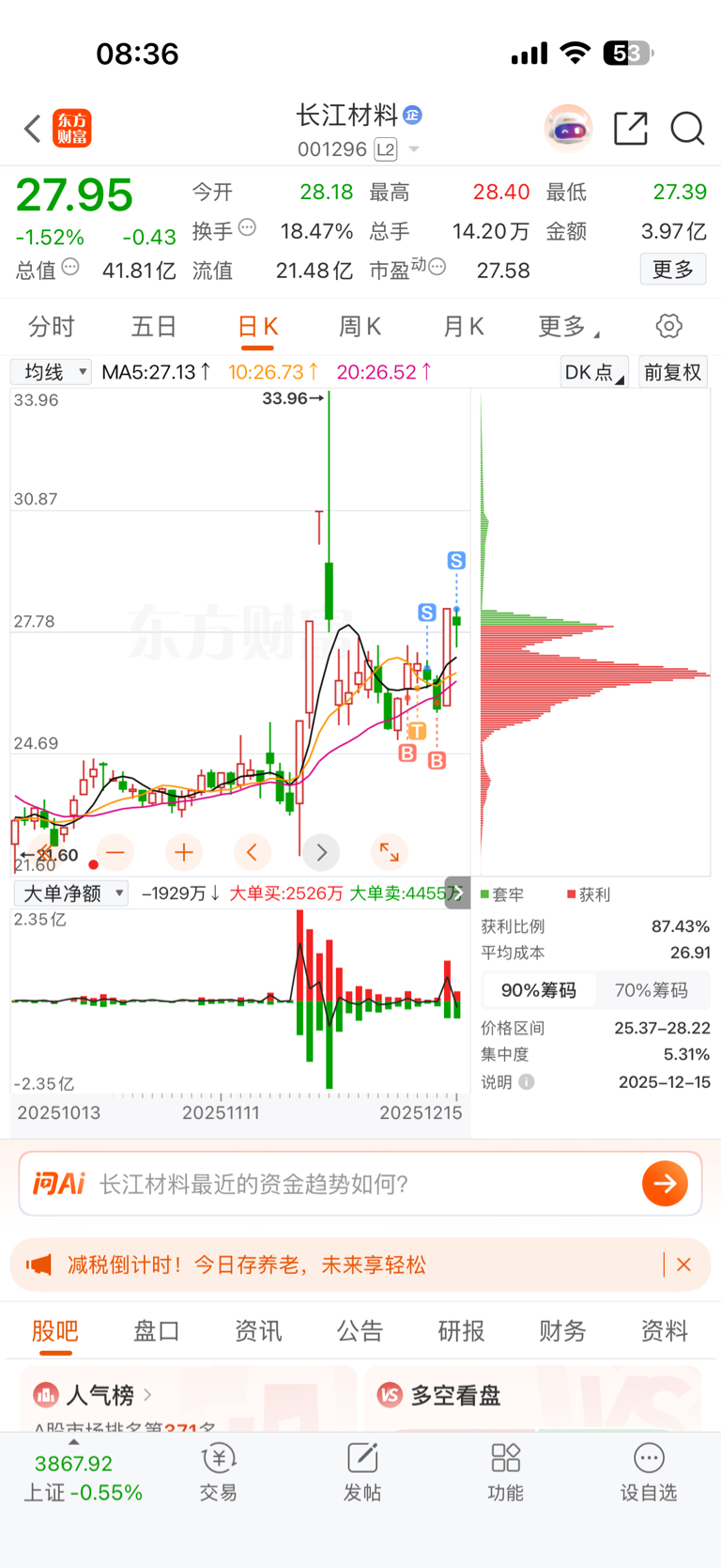 $长江材料(SZ001296)$ 这个买卖点,挺满意