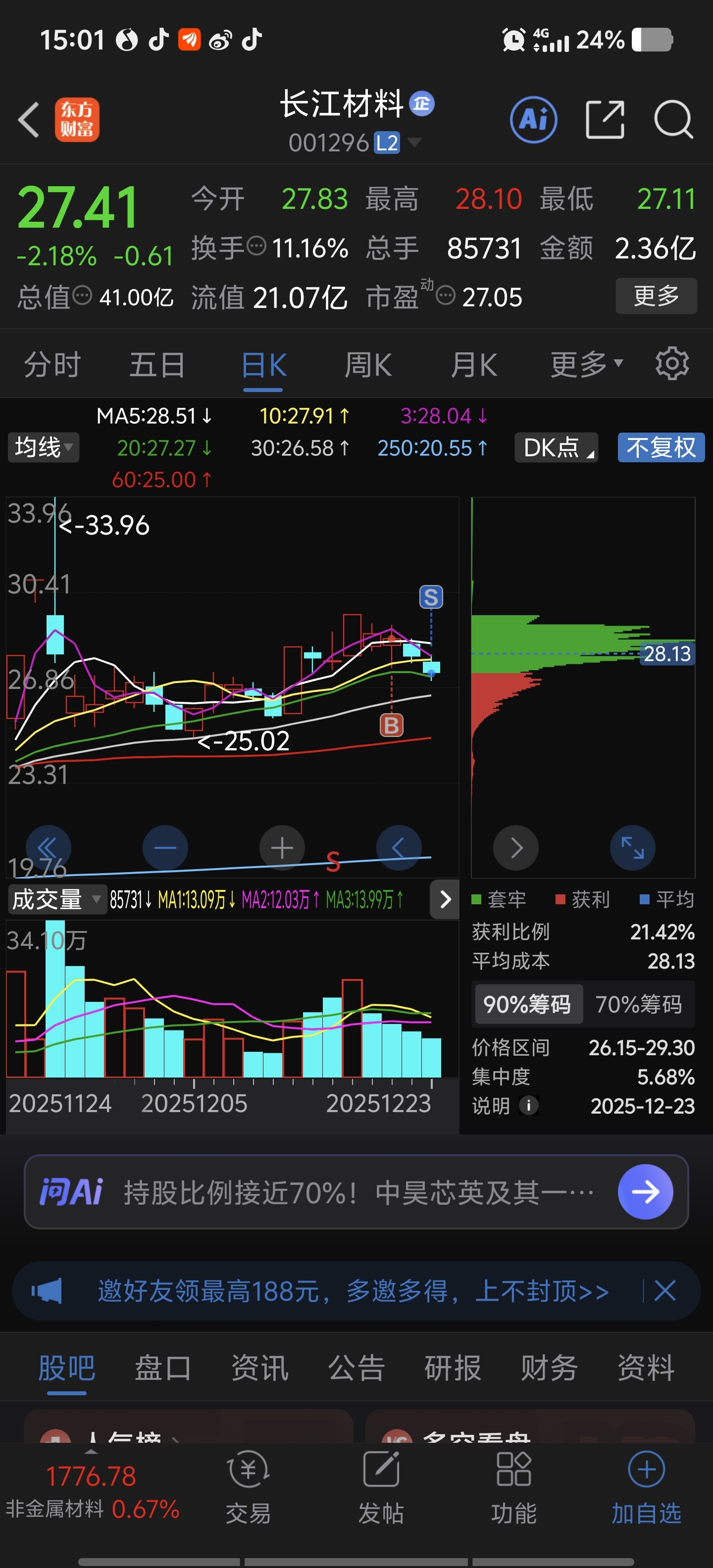 $长江材料(SZ001296)$ 割肉了,看不懂这个庄家,不知道洗盘还是出货
