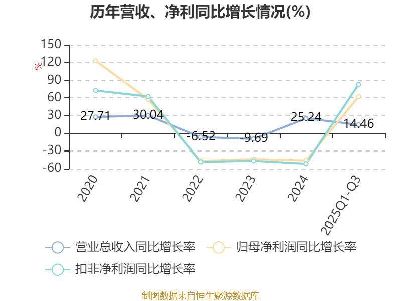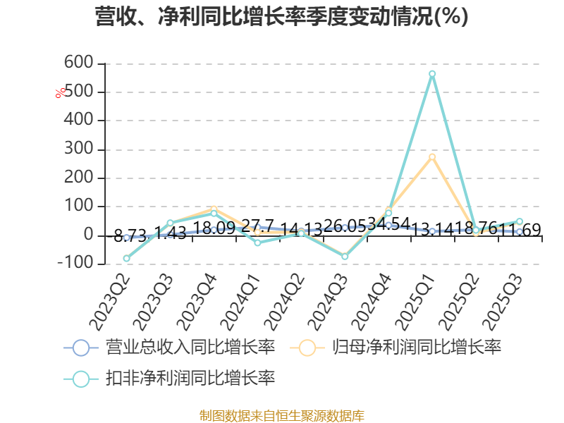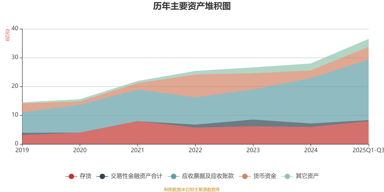 资产重大变化方面,截至2025年三季度末,公司交易性金融资产合计较上年末减少68.54%,占公司总资产比重下降3.28个百分点;货币资金较上年末增加65.86%,占公司总资产比重上升2.58个百分点;预付款项较上年末减少16.09%,占公司总资产比重下降1.36个百分点;应收票据及应收账款较上年末增加33.47%,占公司总资产比重上升1.26个百分点。