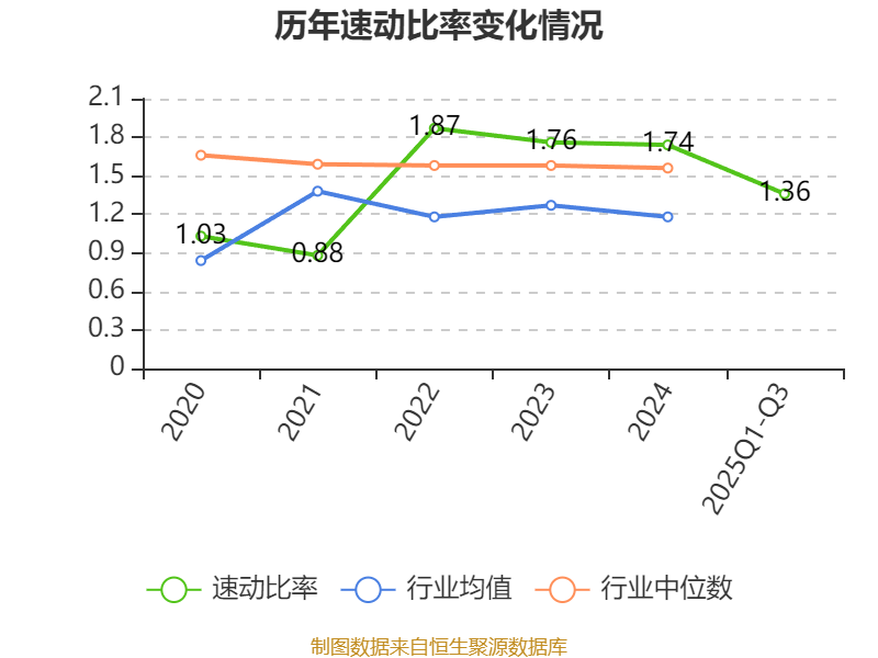 2025年前三季度,公司流动比率为1.76,速动比率为1.36。