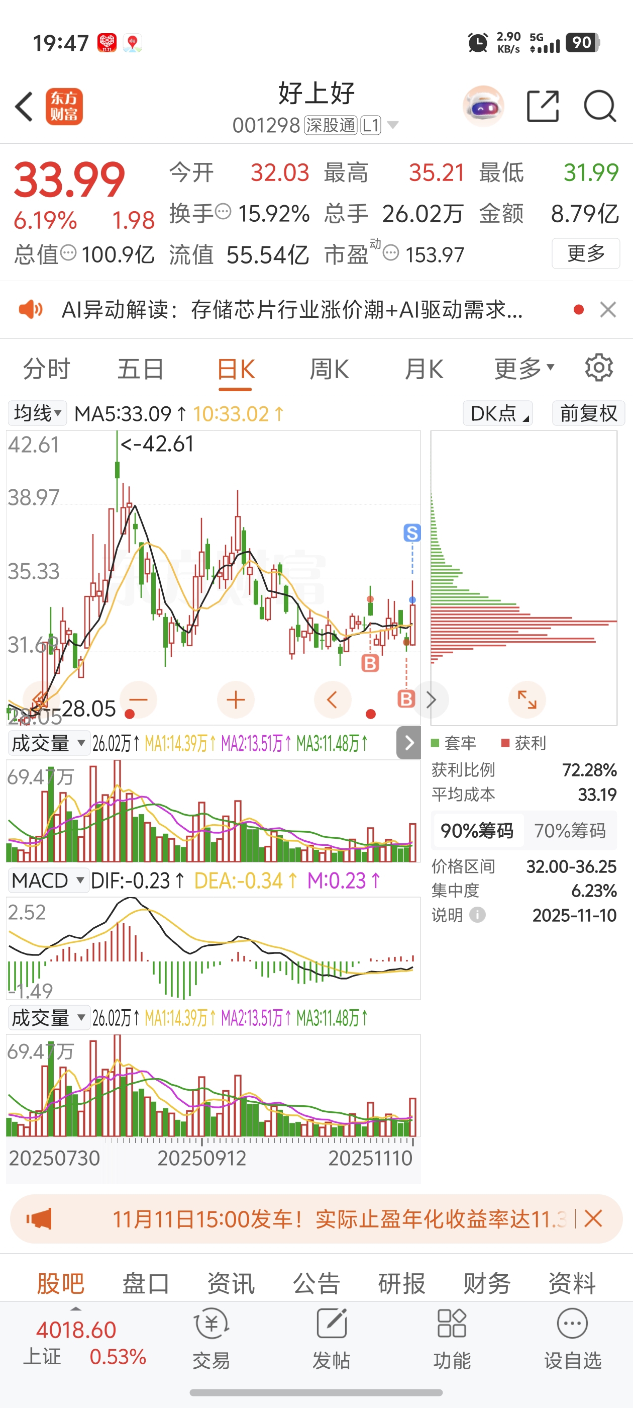 $好上好(SZ001298)$ 做股票最怕着急,多点耐心终于解套