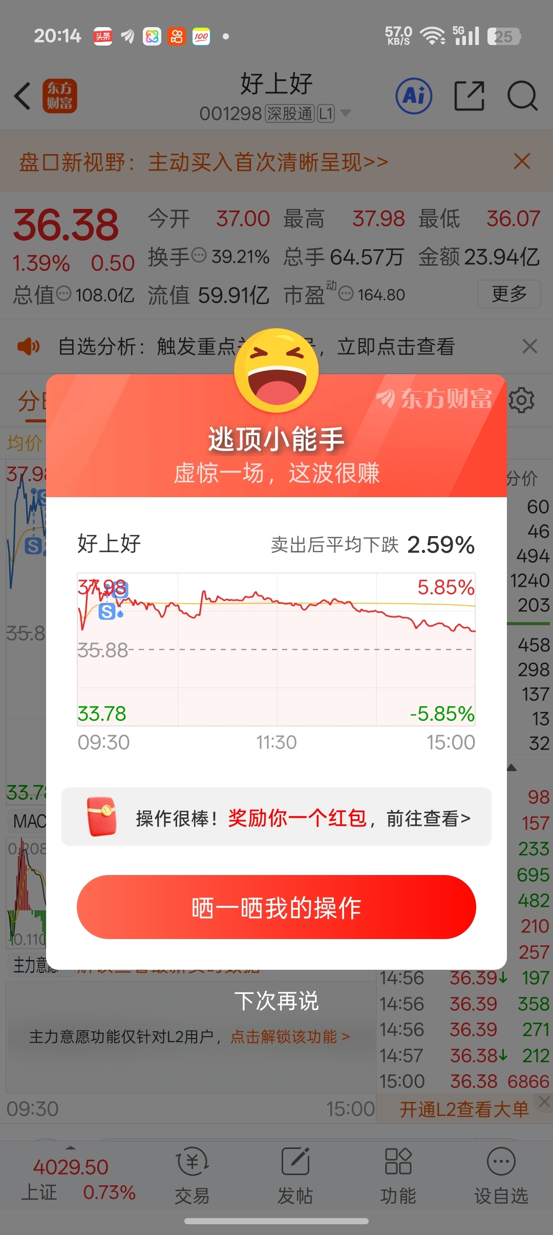 $好上好(SZ001298)$ 说走就走,从来不含糊,,,接上一条,实盘操作!!!
