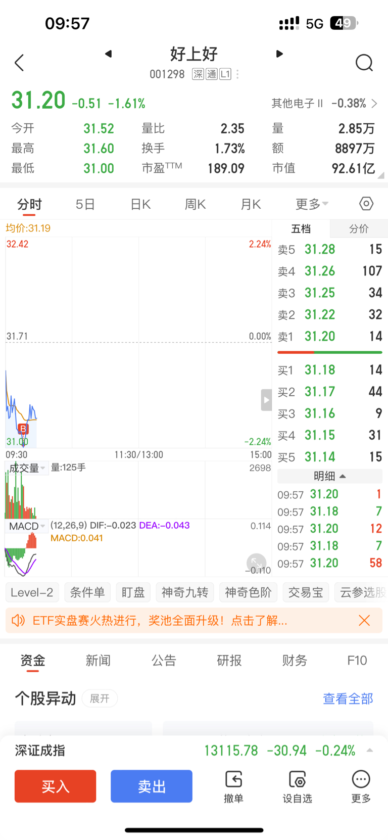 $好上好(SZ001298)$ 抄了个今天的底,希望好运降临