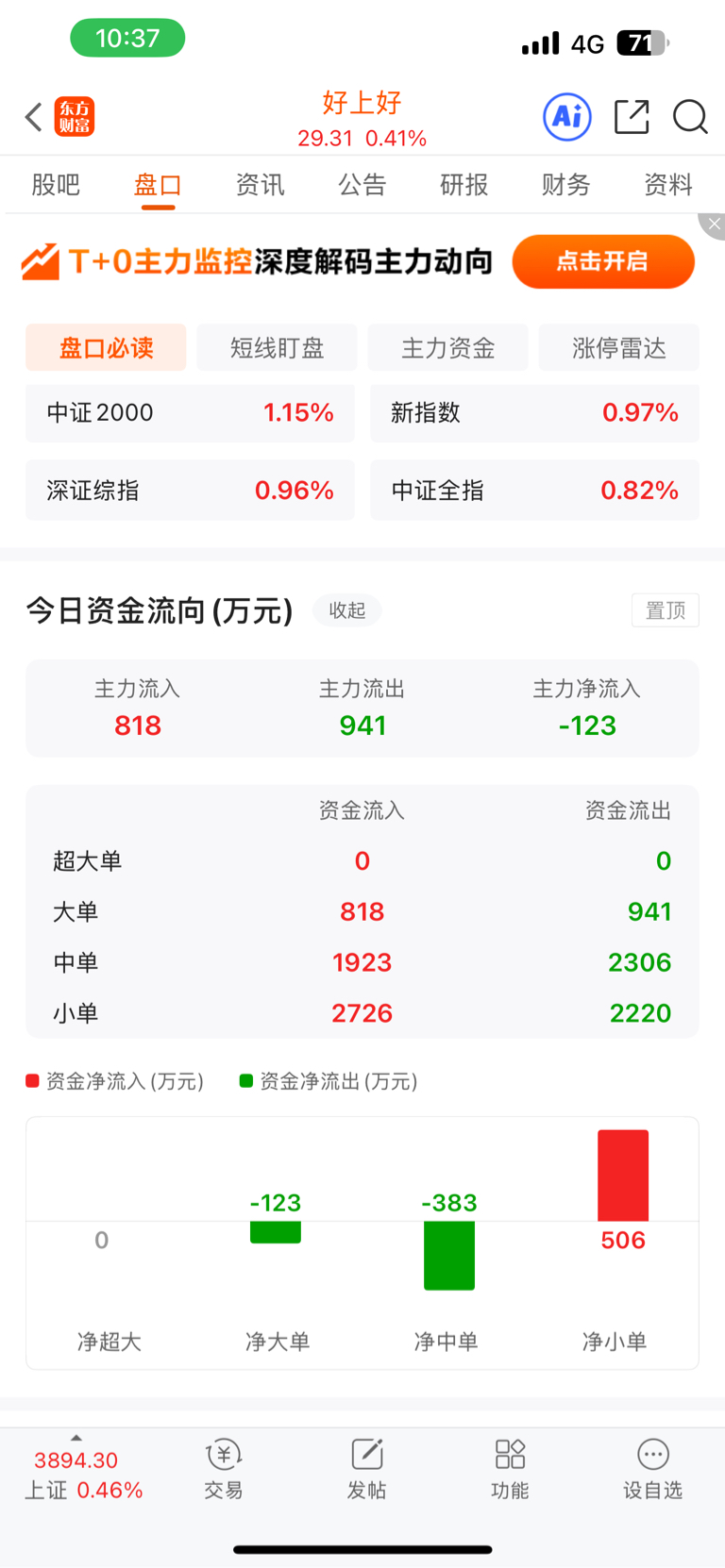 $好上好(SZ001298)$ 大单还是0