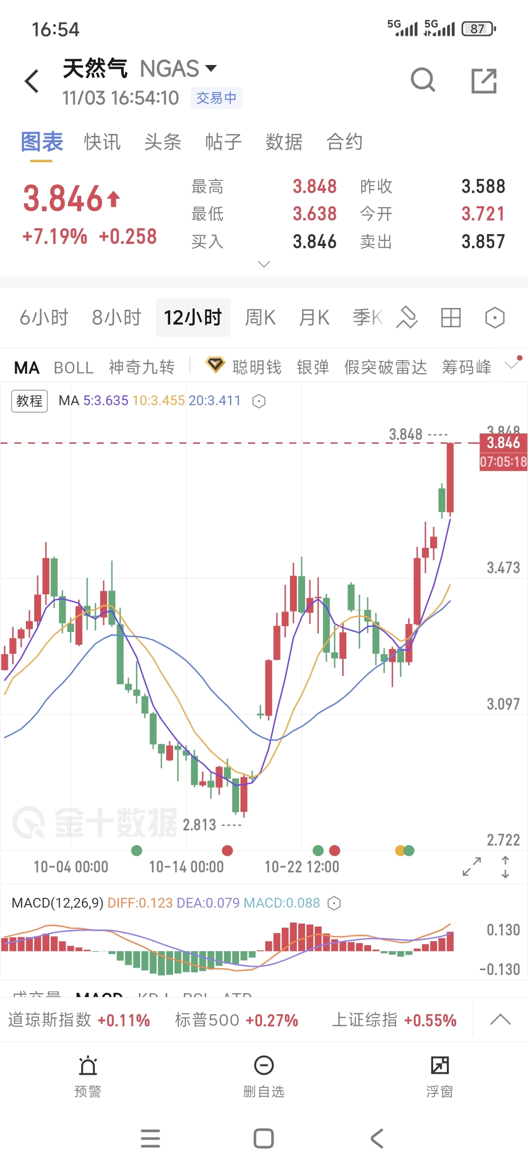 恭喜恭喜,天然气期货大涨,明天吃肉!!