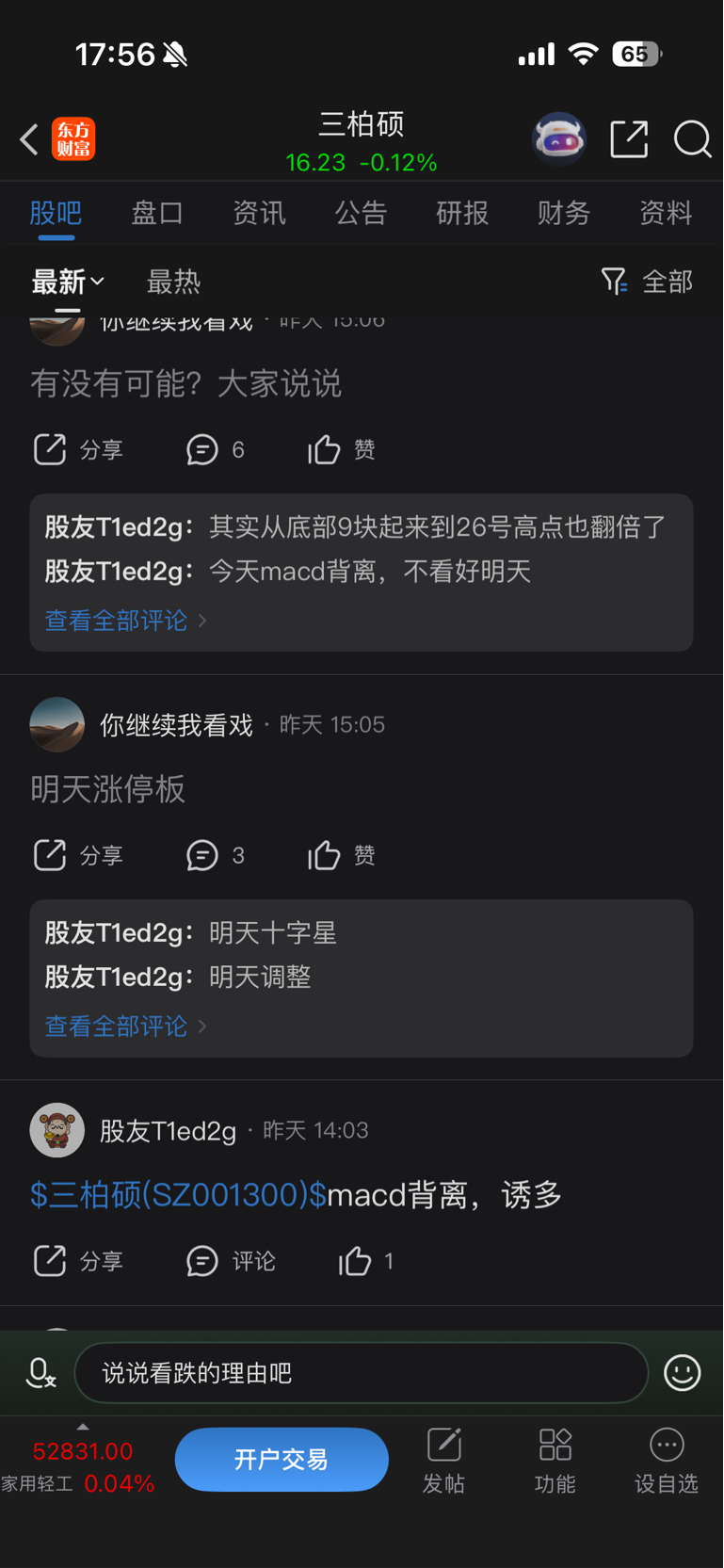 温馨提示: 1.根据《证券法》规定,禁止编造、传播虚假信息或者误导性信息,扰乱证券市场;2.用户在本社区发表的所有资料、言论等仅代表个人观点,与本网站立场无关,不对您构成任何投资建议。用户应基于自己的独立判断,自行决定证券投资并承担相应风险。《东方财富社区管理规定》