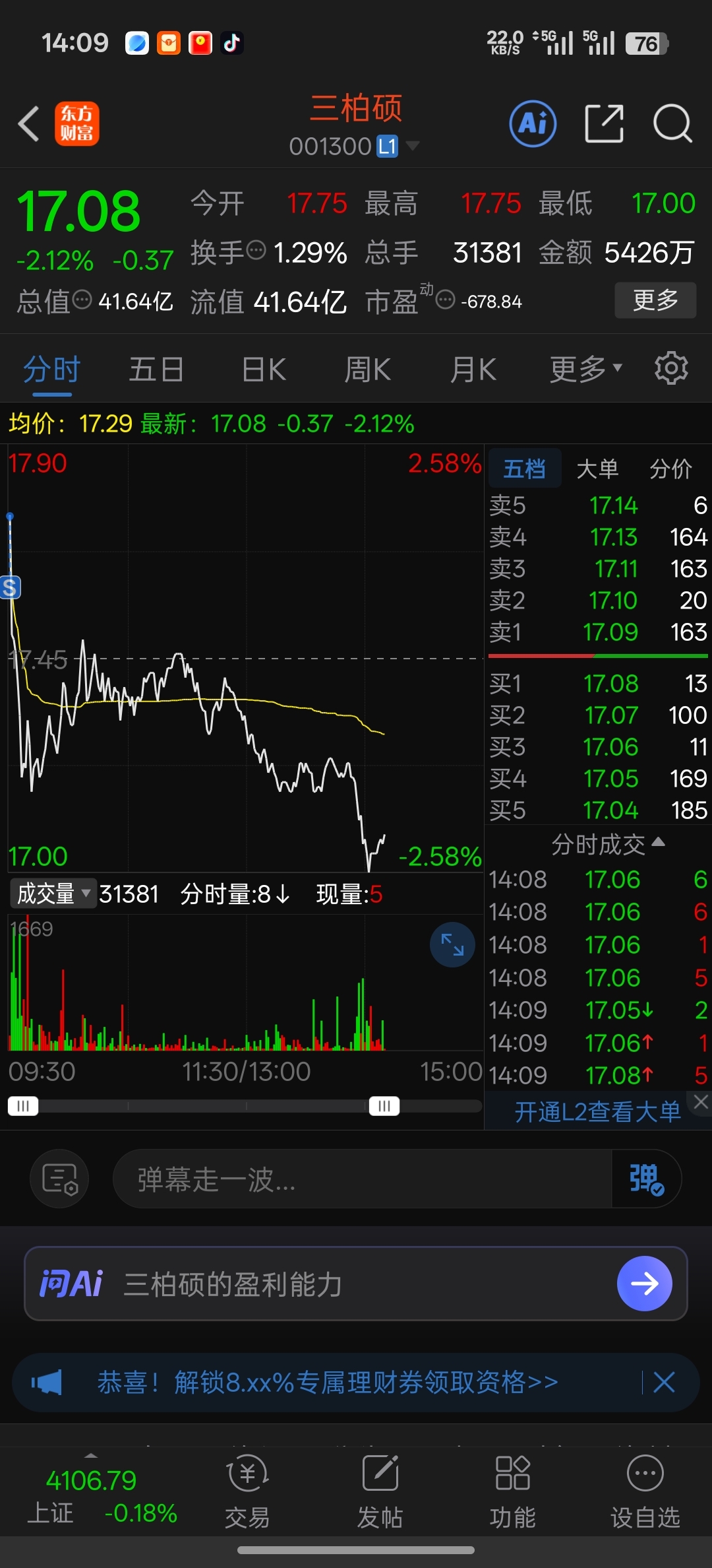 $三柏硕(SZ001300)$ 坚持住,明天起飞!没人叫涨停都不会跑的,谢谢你们!明天竞价进!