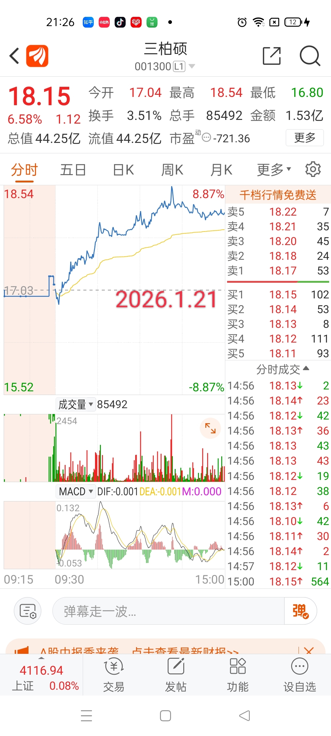 $三柏硕(SZ001300)$ 2026.1.21高度控盘,诱多?