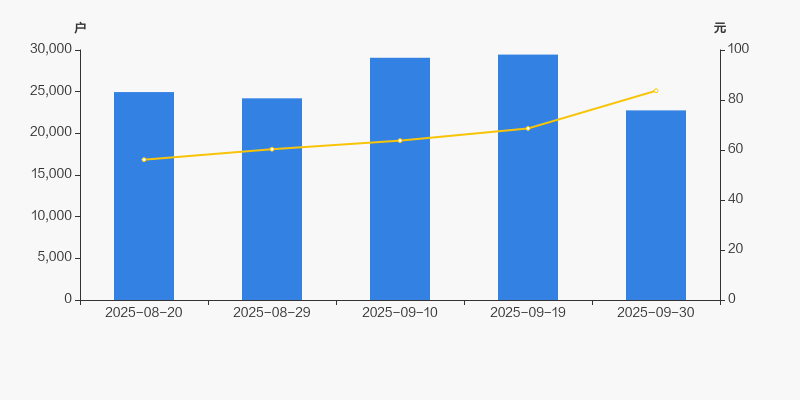2025年8月20日至今,公司股东户数有所下降,区间跌幅为8.81%。2025年8月20日至2025年9月30日区间股价上涨49.16%。