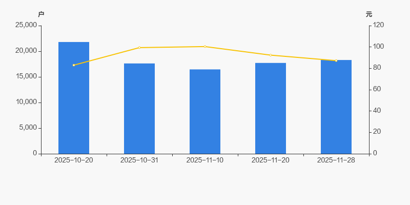2025年10月20日至今,公司股东户数显著下降,区间跌幅为16.12%。2025年10月20日至2025年11月28日区间股价上涨5.09%。