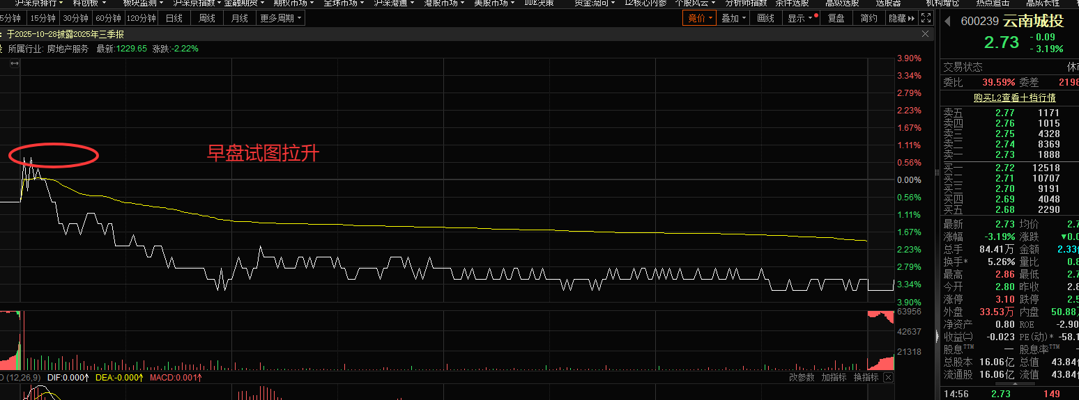 云南城投:公司近年连续亏损,但2025年通过Z产重组完成9家标的股权交割,收回Z金52亿元,Z产负债率降至80.42%,经营活动现金流净额达4.45亿元,财务状况有所改善。若年内完成剩余资产重组并实现经营性现金流持续为正。技术面来看,猪力周五早盘试图拉升,但是地产板块需要休息一天,但是周五全天Z金净流入,说明已经回调到位,有二波的预期,观察今天主力是否连续大单买入,如果出现这个信号就大胆跟随。