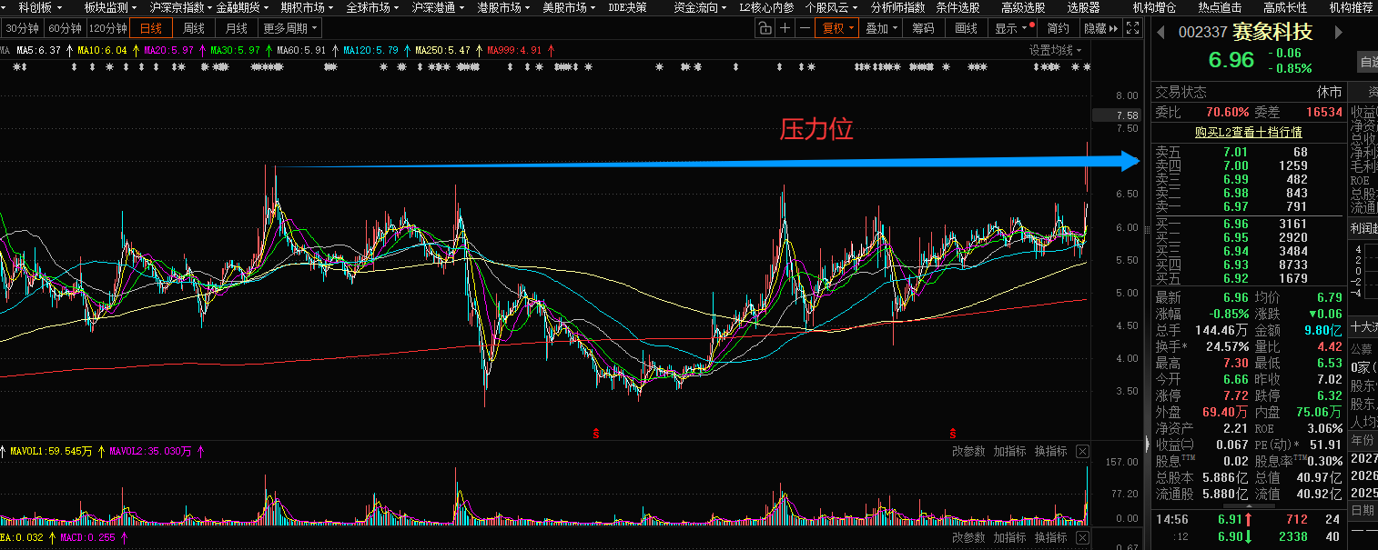 赛象科技:赛象科技是G内轮胎机械行业的领军企业,专注于子午线轮胎关键智能设备的研发、制造与服务。在机器人和汽车题材的驱动下,赛象科技有突破前方压力位的意思,周五的分时走势不难看出,还是有资金要捞起来的,但是板块不成全,今天观察的重点是第二个板的跳空缺口不能补,记住是不能回补,低点最好跟周五一致,那么就有弱转强的预期,分时可以找机会低吸。老k把每一个细节都点到位,大家多多支持老k。