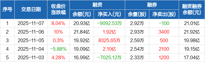 德明利:融资净偿还9092.53万元,融资余额20.93亿元(11-07)