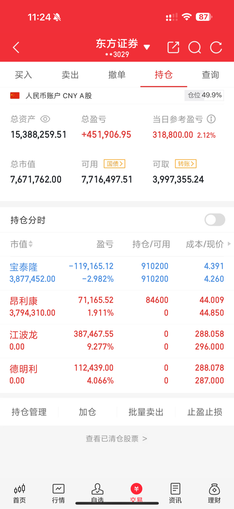 早盘$德明利(SZ001309)$ 江波龙冲高走了落袋为安