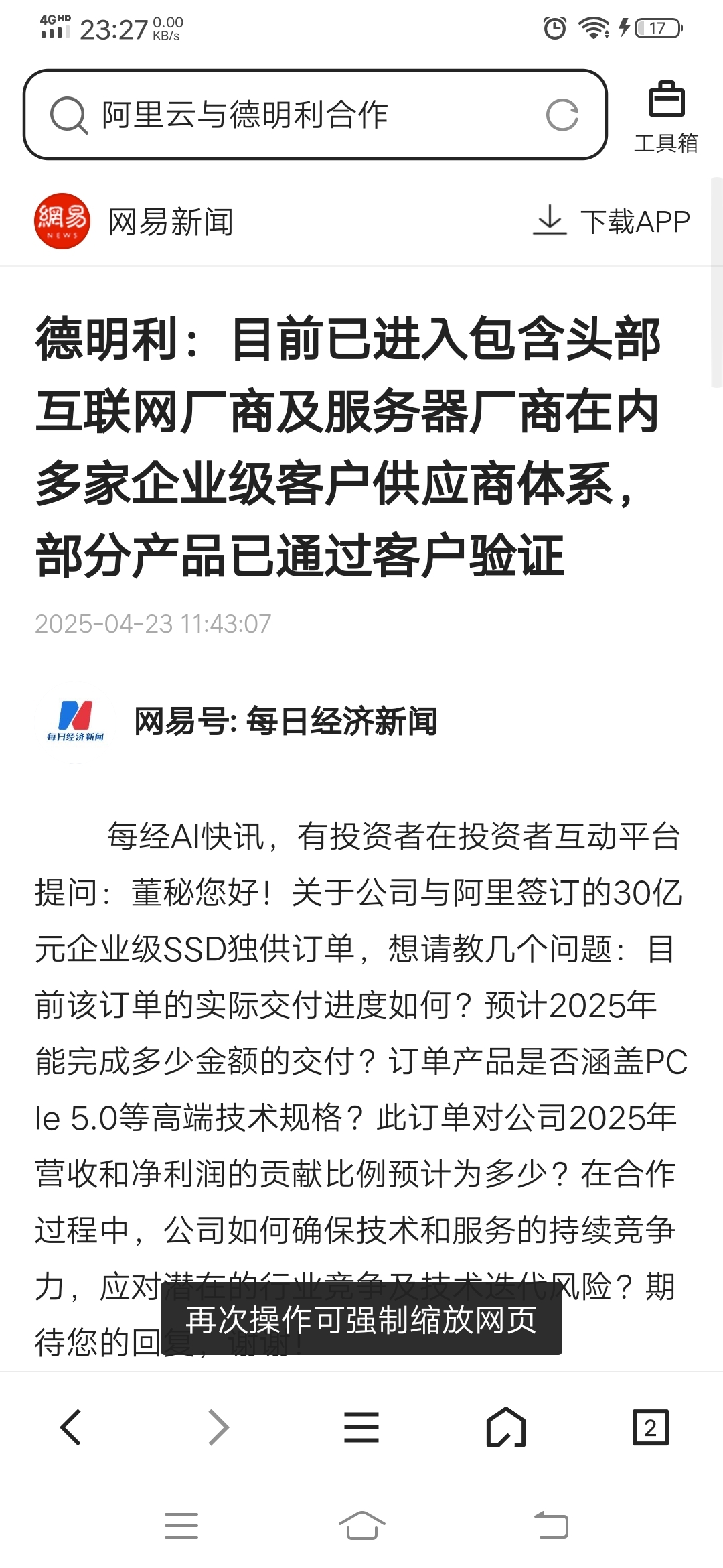 $德明利(SZ001309)$ 更正一下这是4月23日消息,大家别做多狗的接盘侠