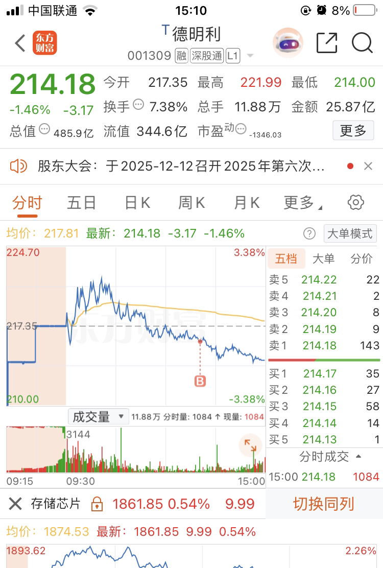 $德明利(SZ001309)$ 感觉不妙啊。明天可能收根大阴。