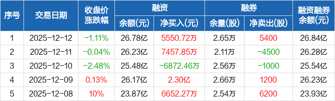 德明利:融资余额26.78亿元,创历史新高(12-12)