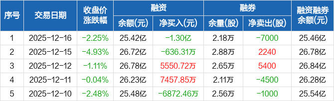 德明利:融资净偿还1.3亿元,融资余额25.42亿元(12-16)