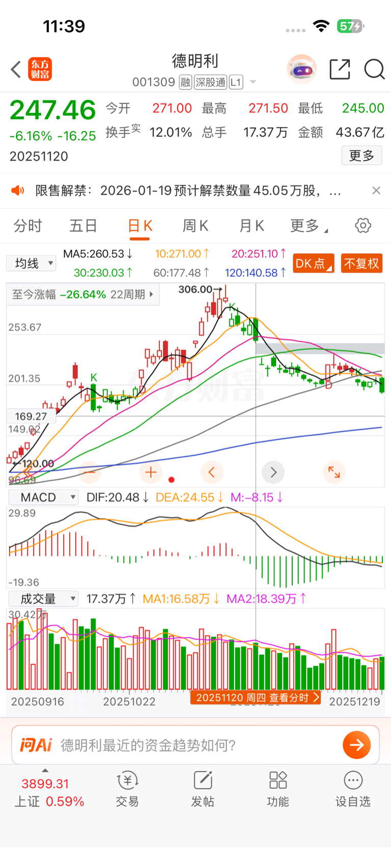 $德明利(SZ001309)$ 想买的还是看一下11月20号当天的走势跟放量,是不是跟今天一样,再看第二天什么走势