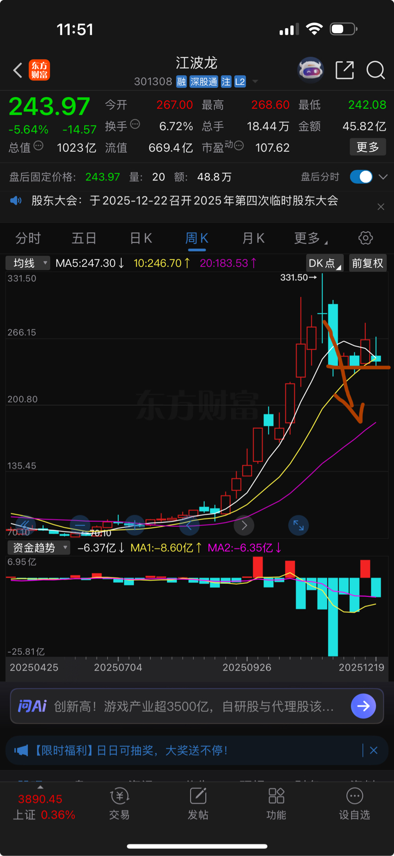 三兄弟都搭建起了平台没有往下杀,绝对说明了主力资金在这个区间接住了筹码,不然就像
