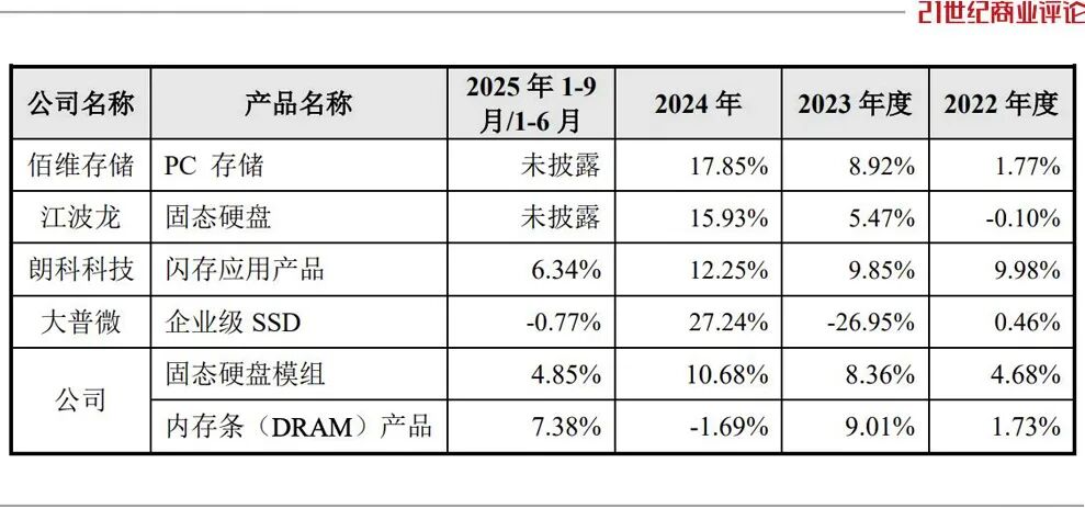 2024年,德明利的固态硬盘模组,毛利率刚过10%,内存条甚至是负毛利;佰维存储、江波龙等厂商的同类产品,毛利率在15%以上。