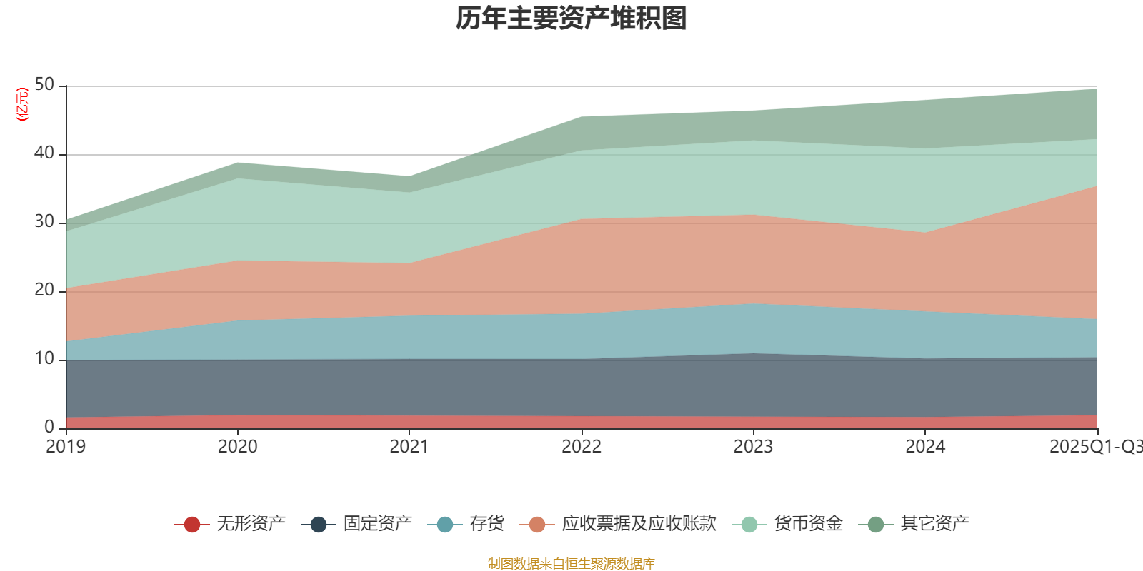 资产重大变化方面,截至2025年三季度末,公司应收票据及应收账款较上年末增加68.86%,占公司总资产比重上升15.19个百分点;货币资金较上年末减少44.24%,占公司总资产比重下降11.81个百分点;存货较上年末减少18.84%,占公司总资产比重下降3.1个百分点;其他流动资产较上年末减少87.37%,占公司总资产比重下降1.73个百分点。