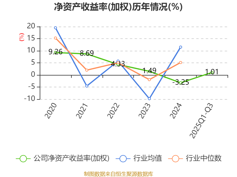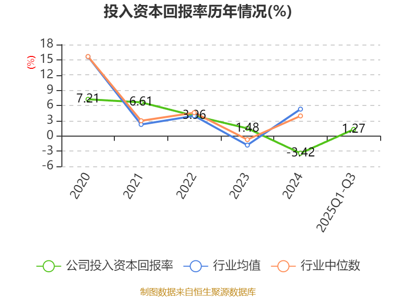 盈利能力方面, 2025年前三季度公司加权平均净资产收益率为1.01%,同比上升3.57个百分点。公司2025年前三季度投入资本回报率为1.27%,较上年同期上升4.05个百分点。