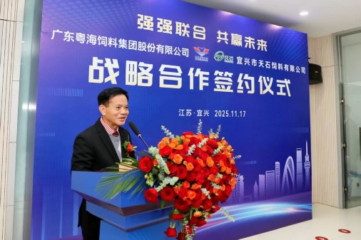 宜兴天石总经理邹益东表示,公司深耕饲料工业领域近三十年,与全球前三十强饲料企业建立长期战略合作。此次与粤海饲料成功携手,双方将在技术研发、多元化产品矩阵以及经营创新突破等方面同频共振。宜兴天石产品销量将进一步提升,团队获得更广阔的发展空间,在全新的舞台上延续使命,共同推动中国养殖业技术升级与绿色发展。