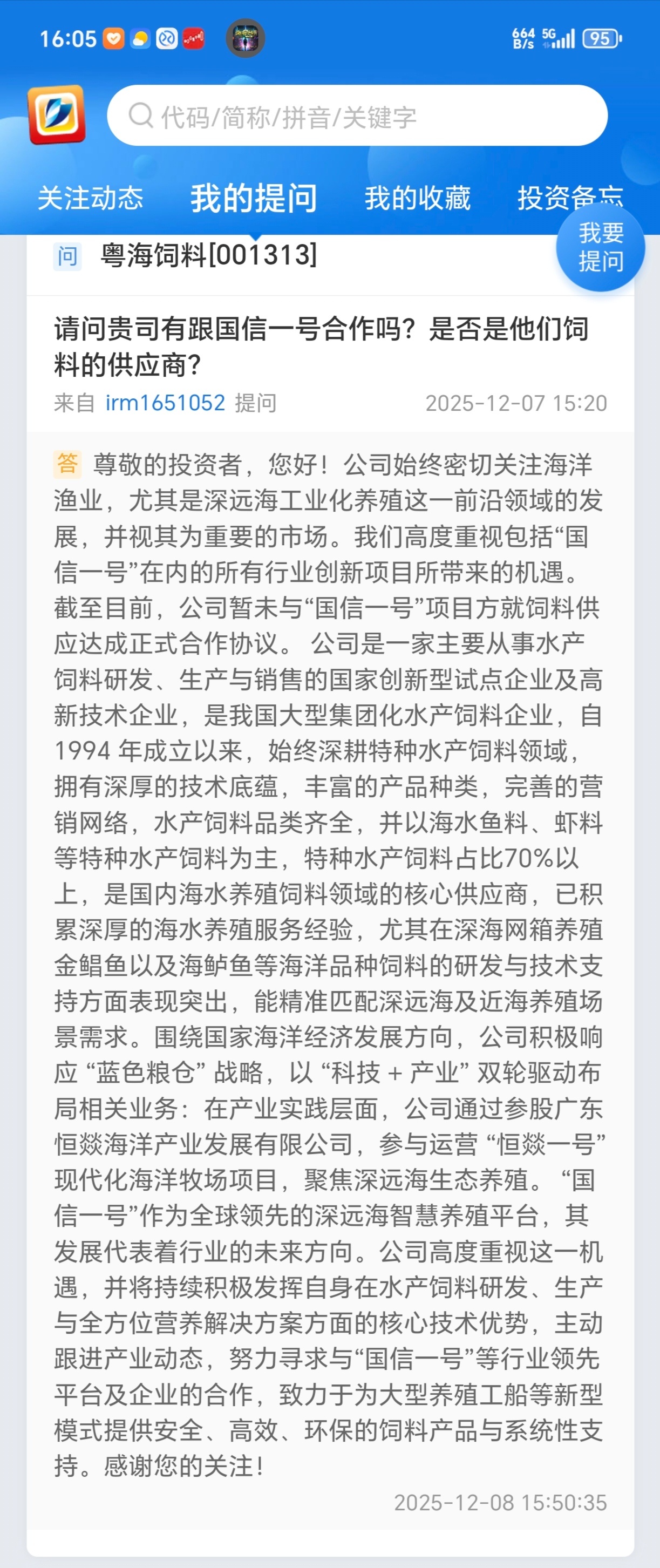 $粤海饲料(SZ001313)$ 我昨天问的,今天就回答。公司董秘可以。
