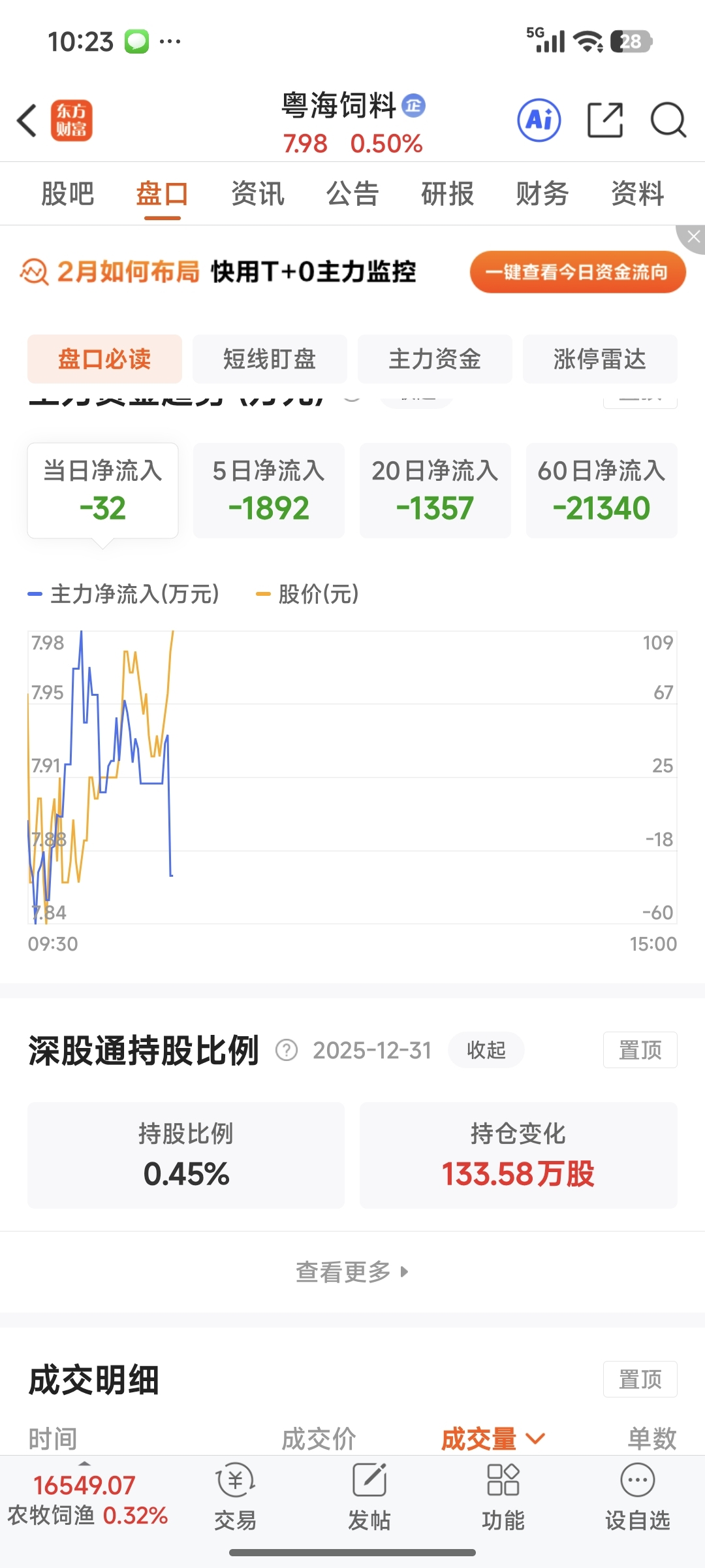 $粤海饲料(SZ001313)$ 稍微上涨,主力就出货