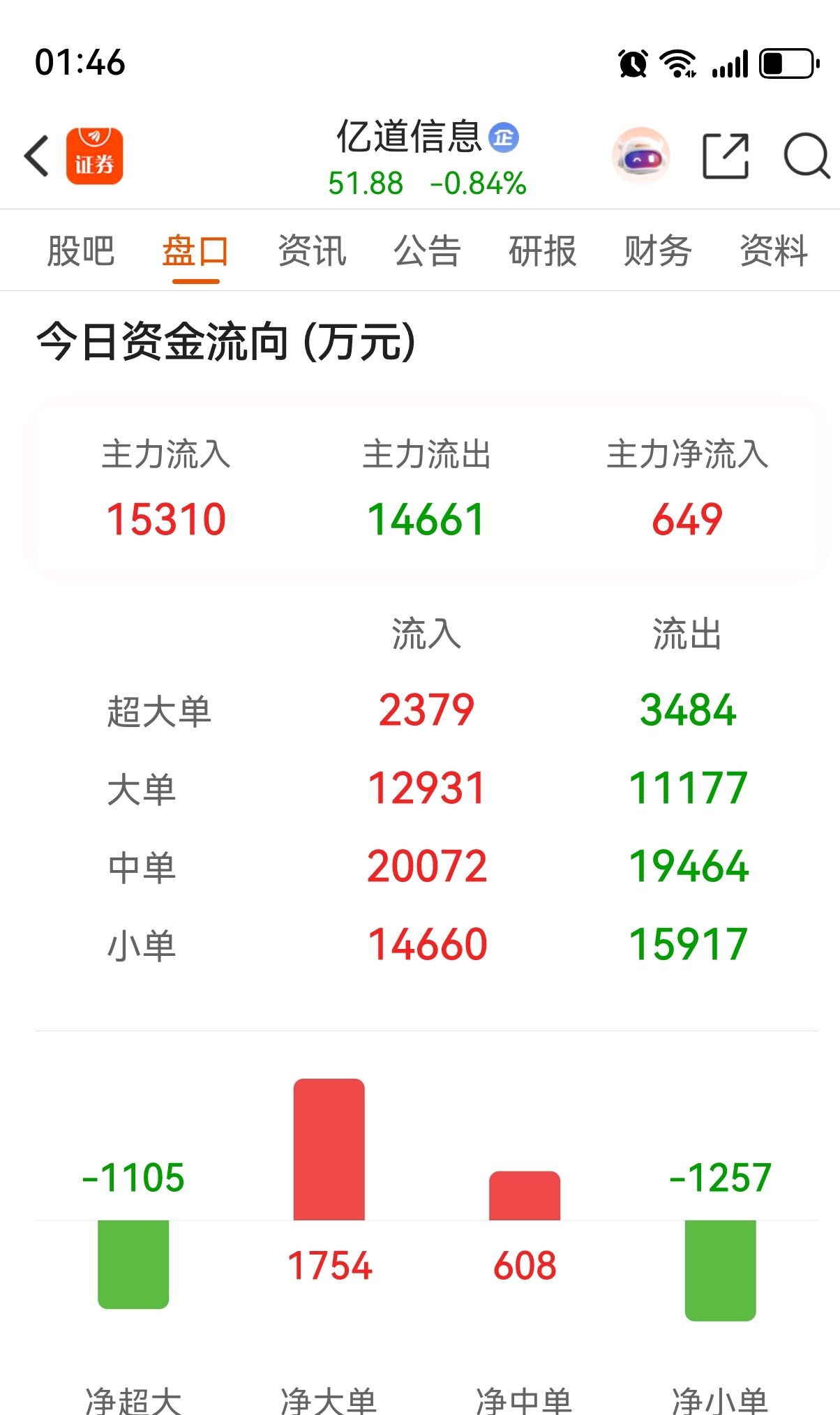 $亿道信息(SZ001314)$ 主力跑了