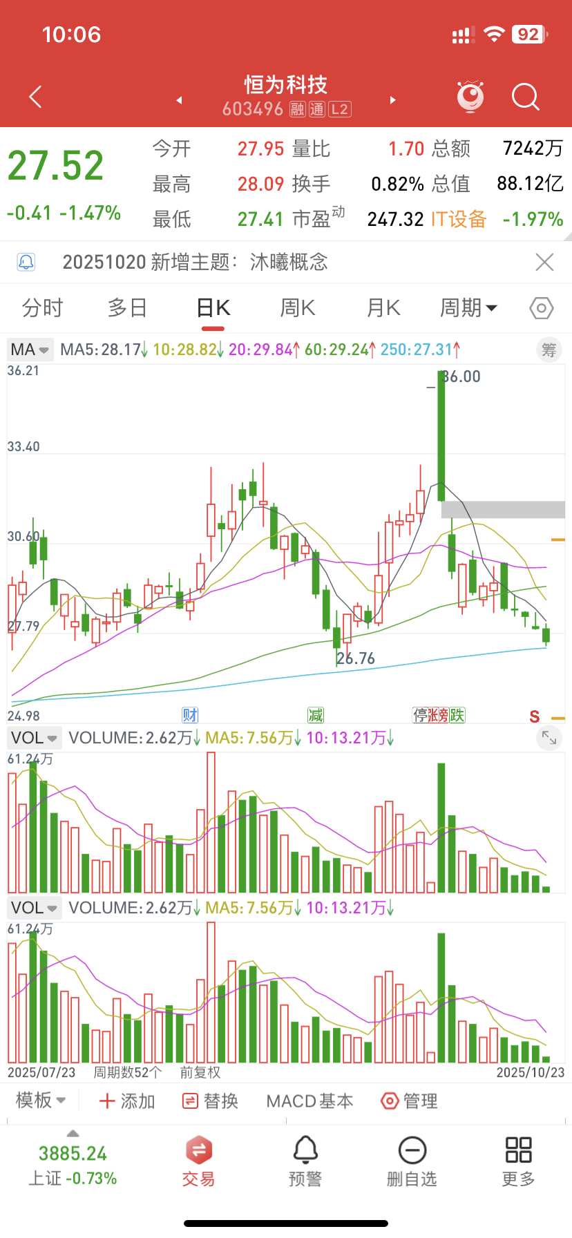 请参考恒为科技9月30日重组复牌后走势!短线可以走了,中长线风险不大。。