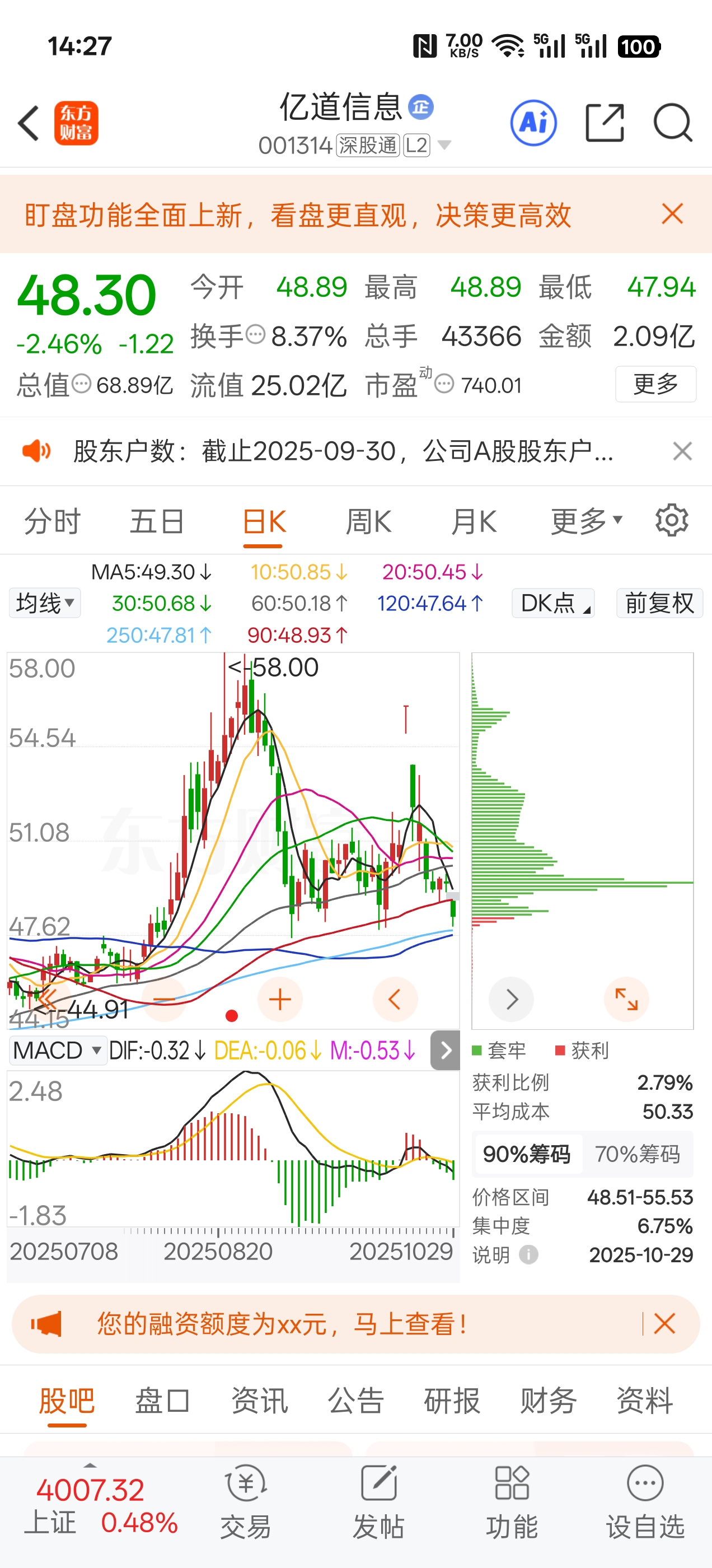 $亿道信息(SZ001314)$ 看一下获利盘C