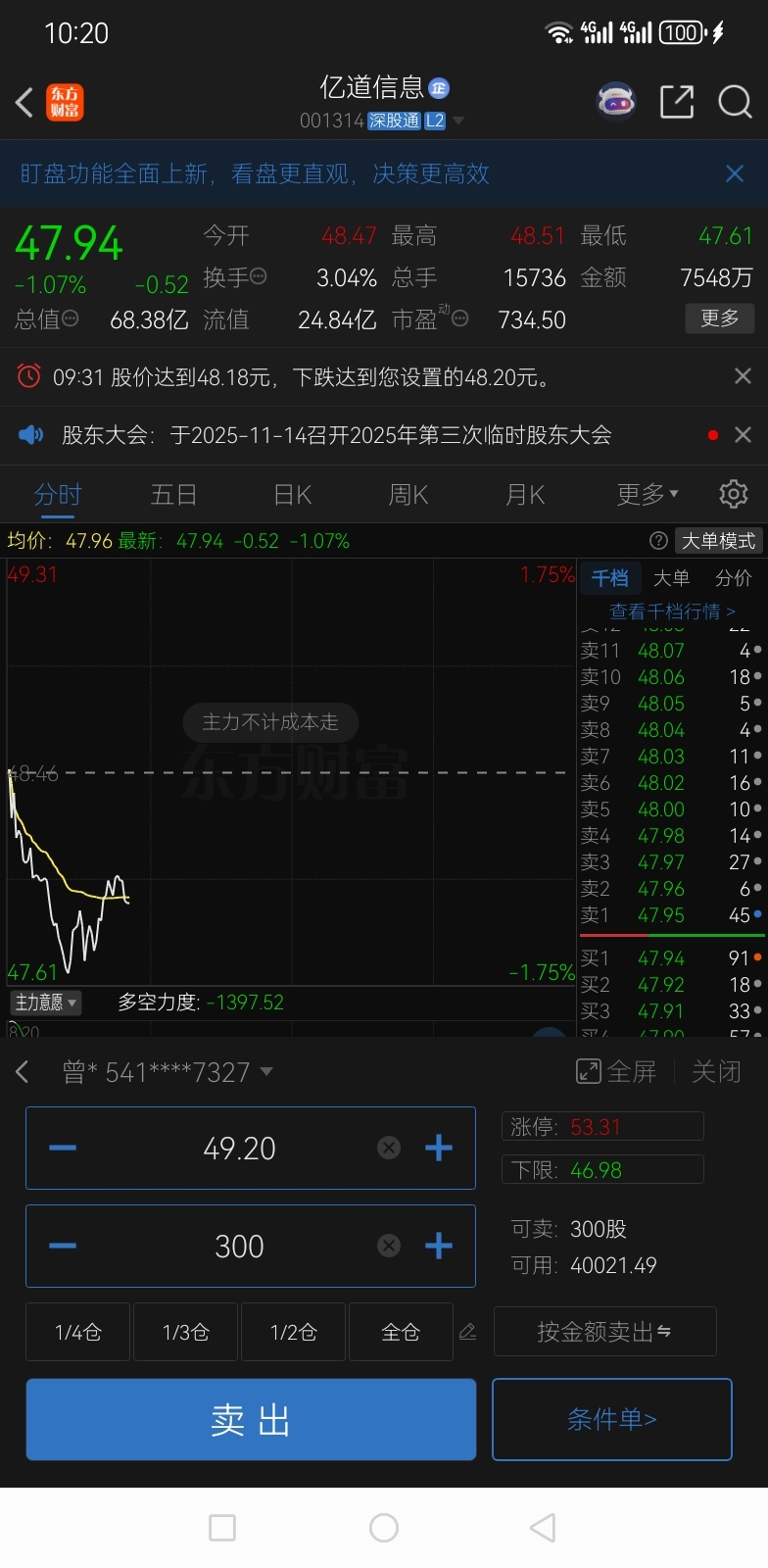 $亿道信息(SZ001314)$ 给个机会,让俺走