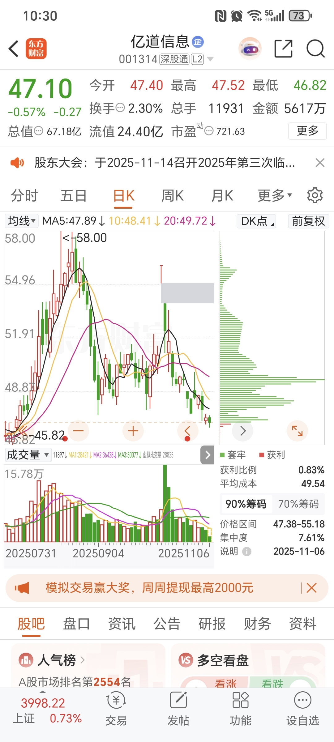 $亿道信息(SZ001314)$ 获利比例不到1%,牛不牛?