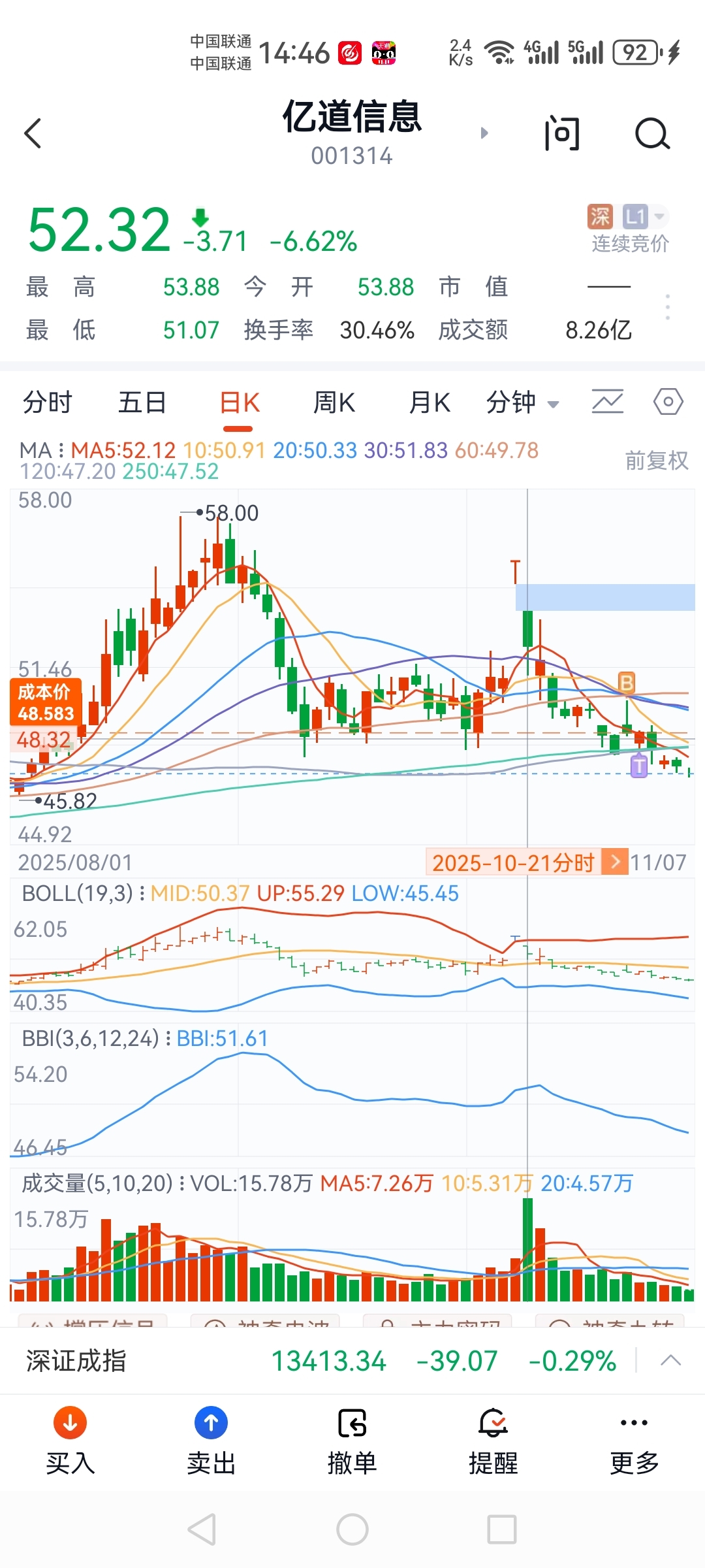 $亿道信息(SZ001314)$ 在10月21号51到53.8之间,追进来的至少有四个亿的量,这一批追高被套的散户,到今天每股都至少亏进6元去
