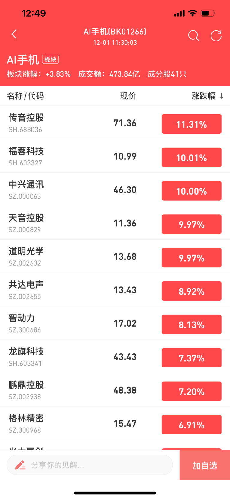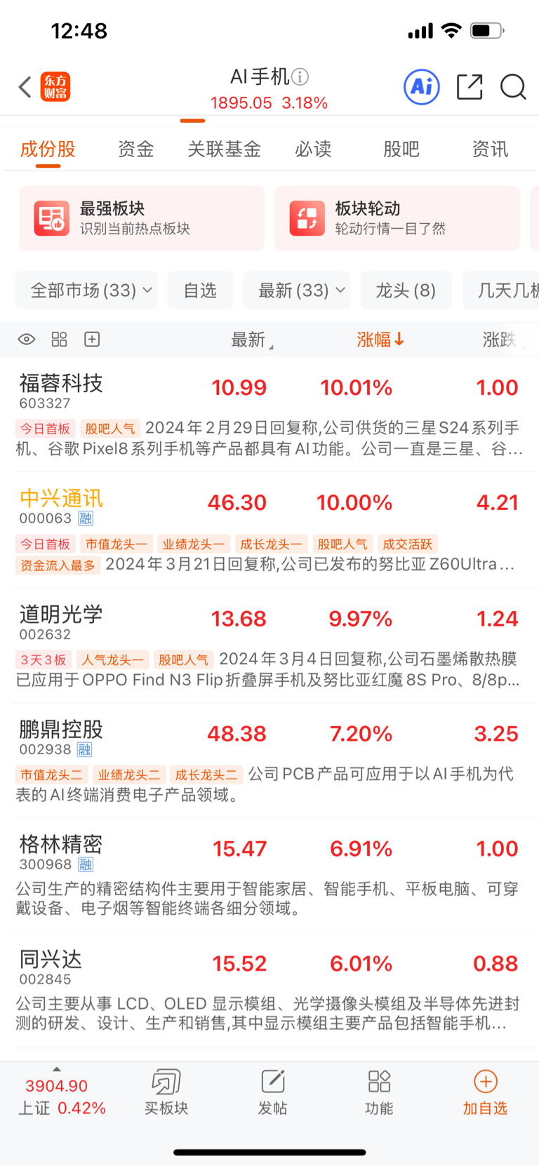 今天亿道信息涨了一点,是因为AI手机概念大涨。像中兴通讯,天音控股都涨停了