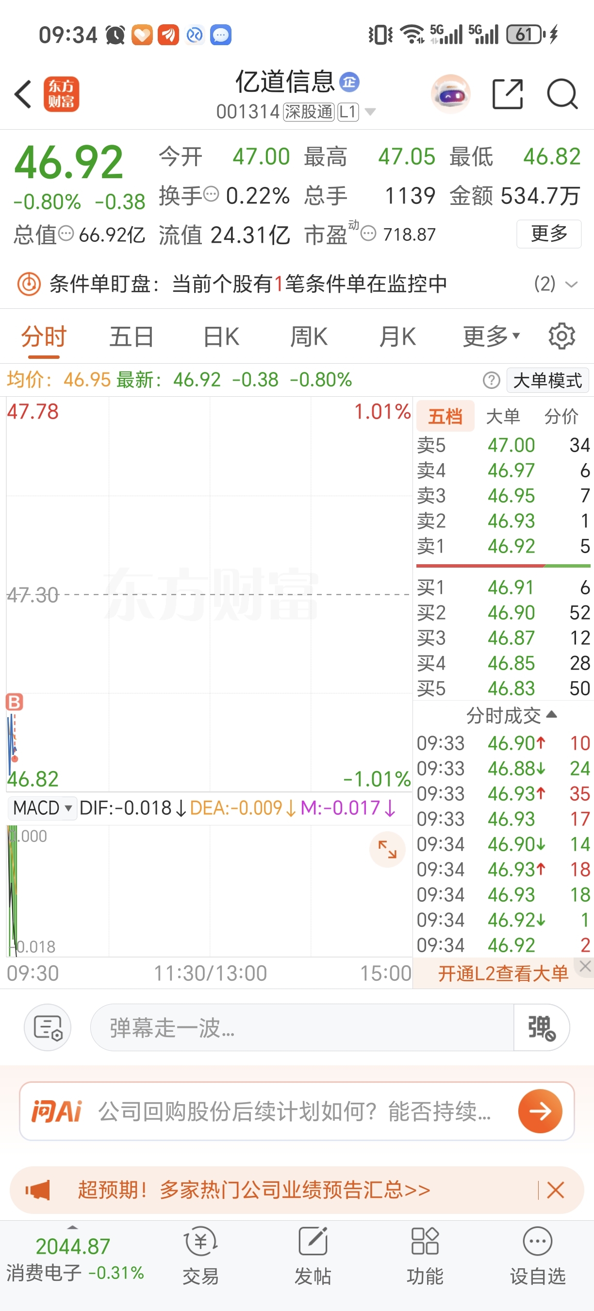 $亿道信息(SZ001314)$