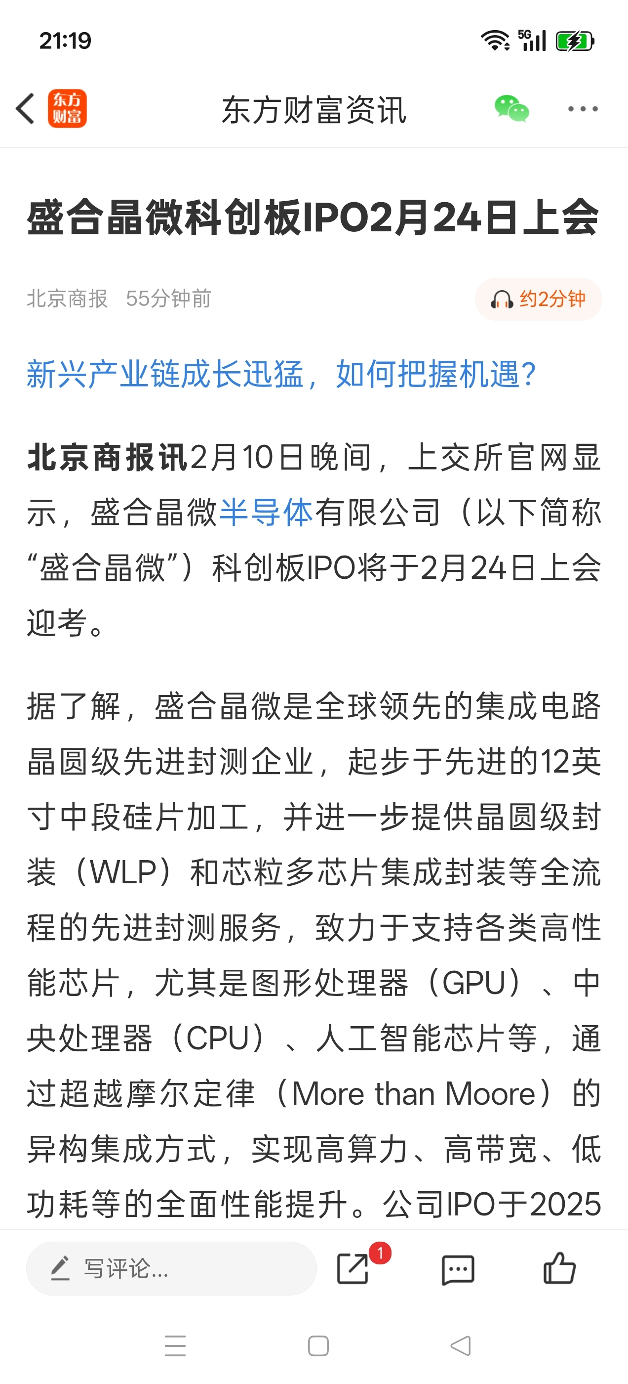 $亿道信息(SZ001314)$ 盛合晶微开年第一股来了。