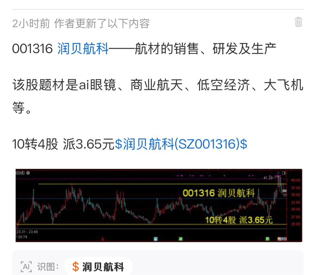 001316润贝航科——航材的销售、研发及生产该股题材是ai眼镜、商业航天、低空