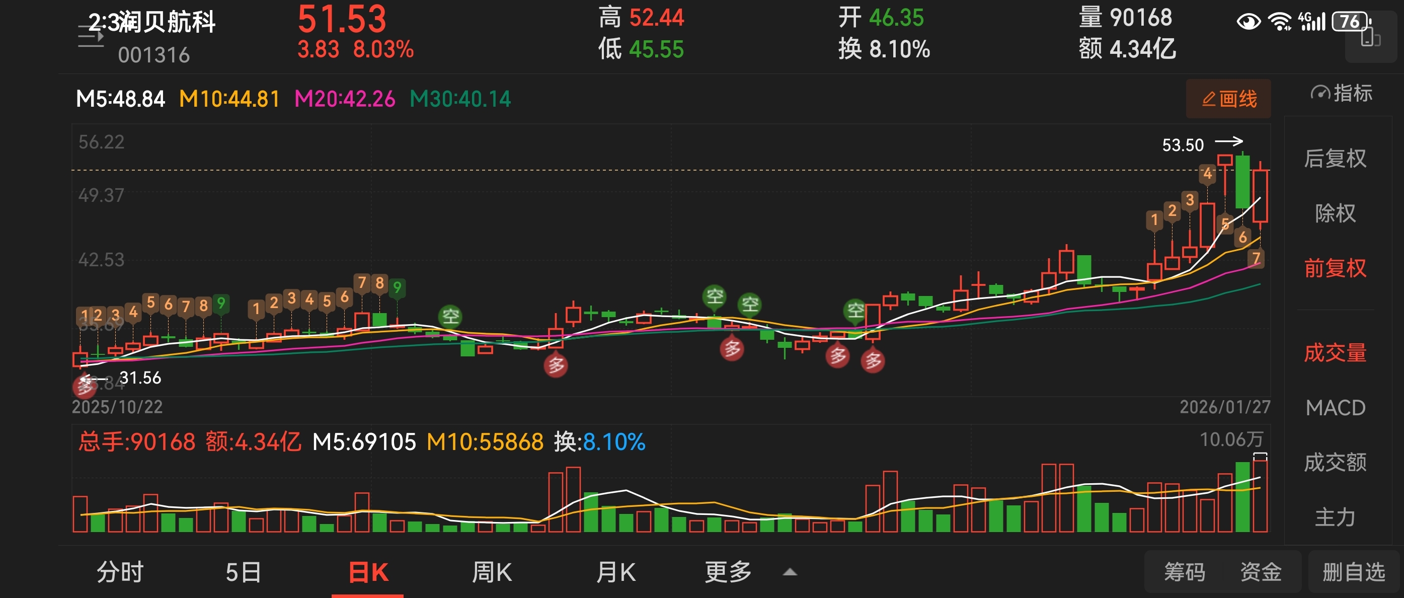 $润贝航科(SZ001316)$ 关注上板行情,不上板就高抛低吸了