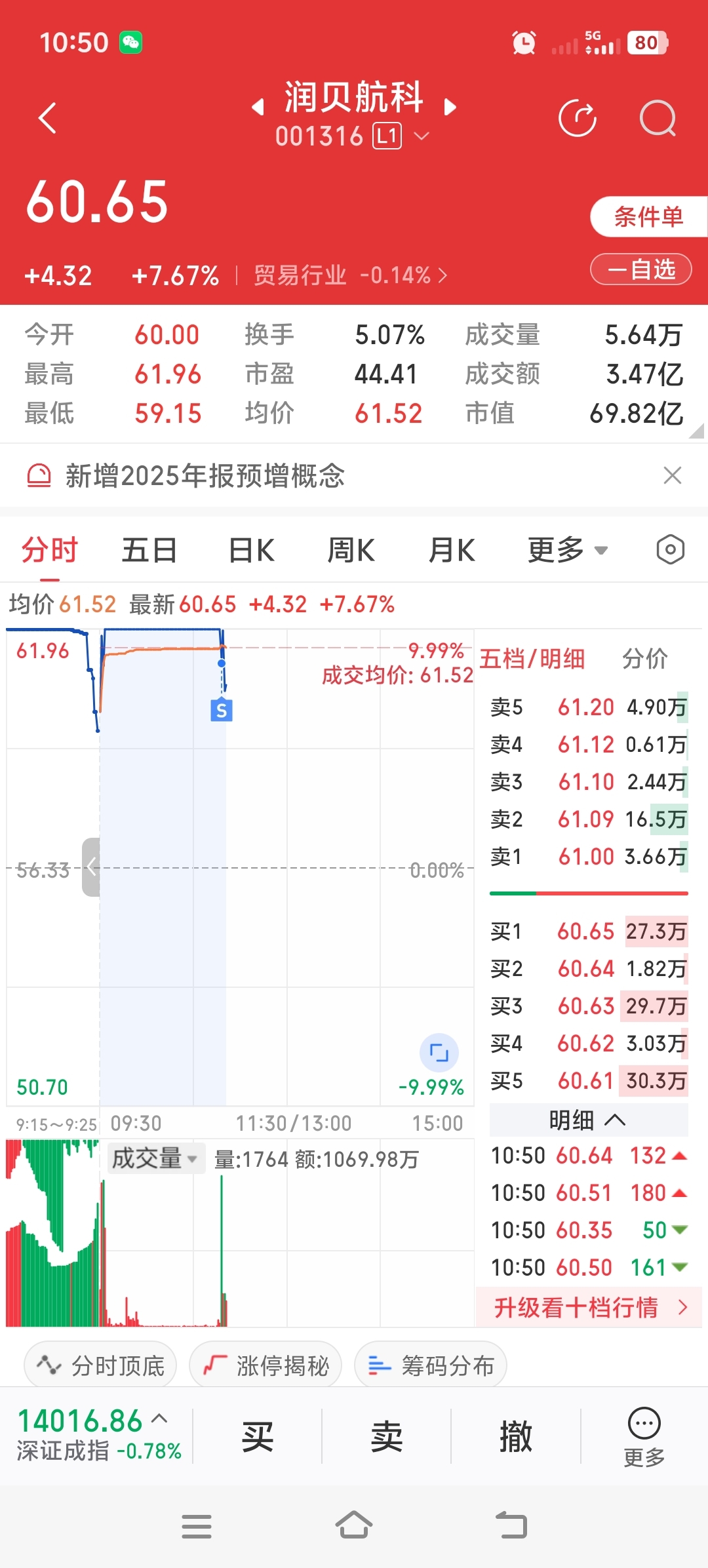 $润贝航科(SZ001316)$ 什么情况,还好挂了条件单
