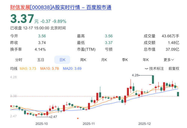 财信发展报收3.37元,日涨幅-9.89%(跌停),换手率4.14%,今年以来的涨幅为21.66%。