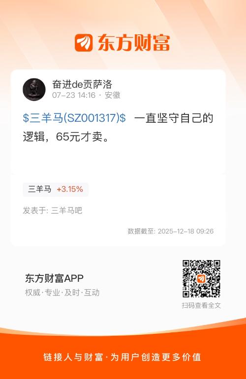 $三羊马(SZ001317)$  一直坚守自己的逻辑,65元才卖。