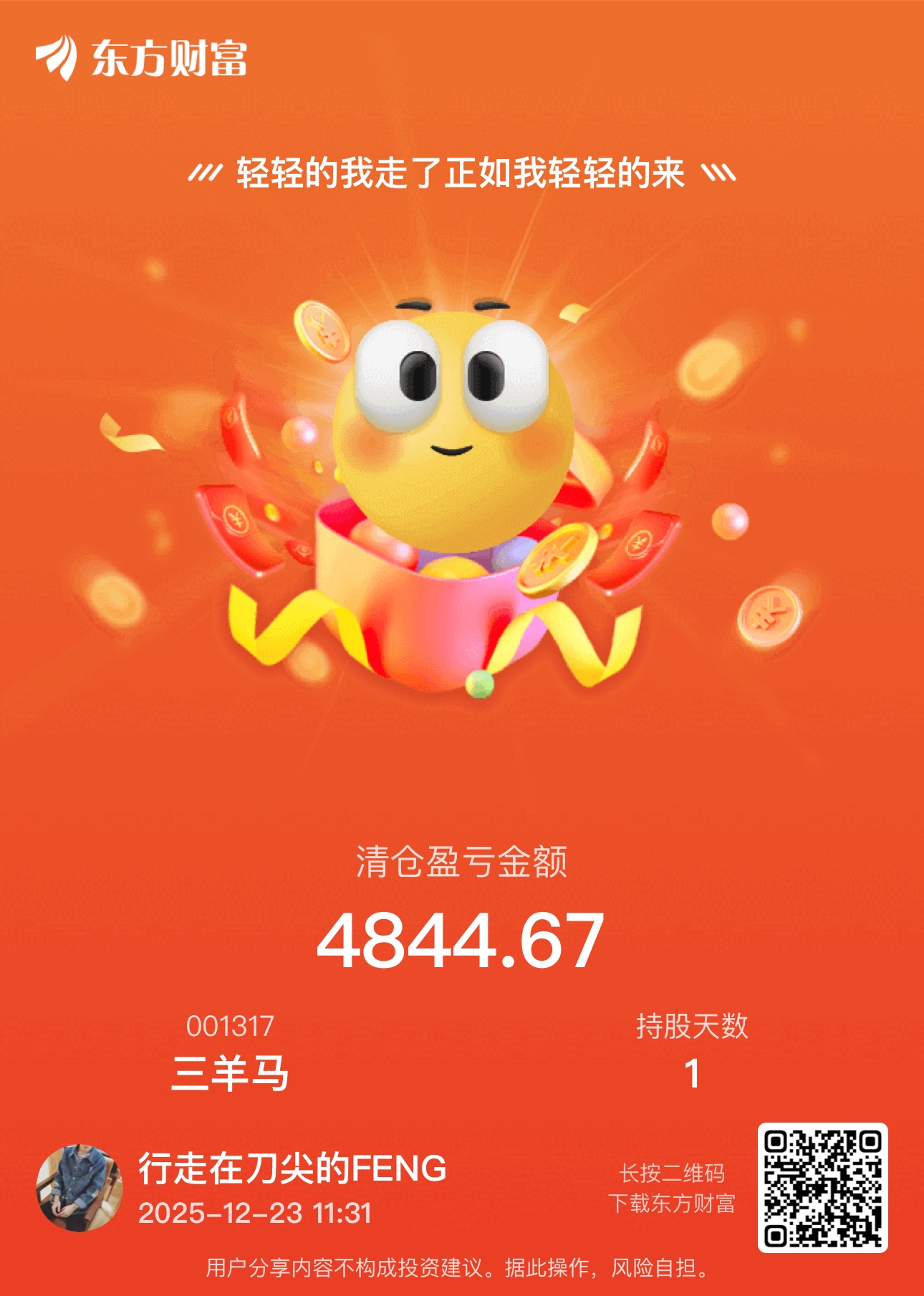 $三羊马(SZ001317)$ 我是拉萨早上冲高卖了,主力你可以拉了!