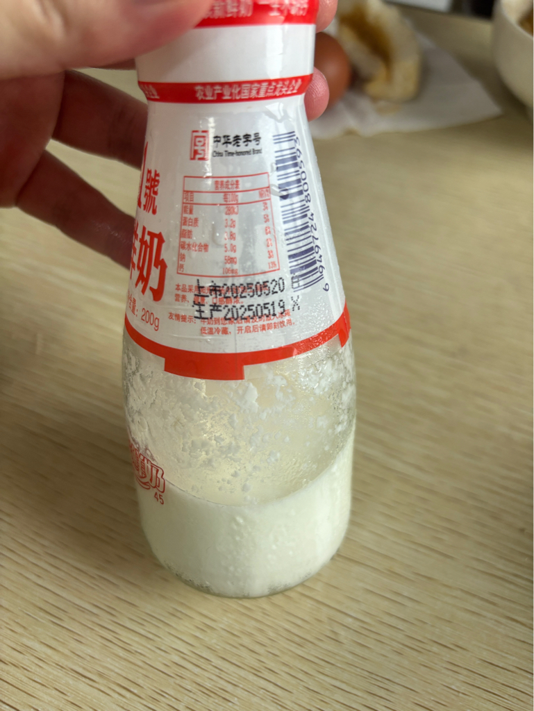 今天早上公司食堂的,十几瓶都是这种里面有不明沉淀还是牛乳没散开。