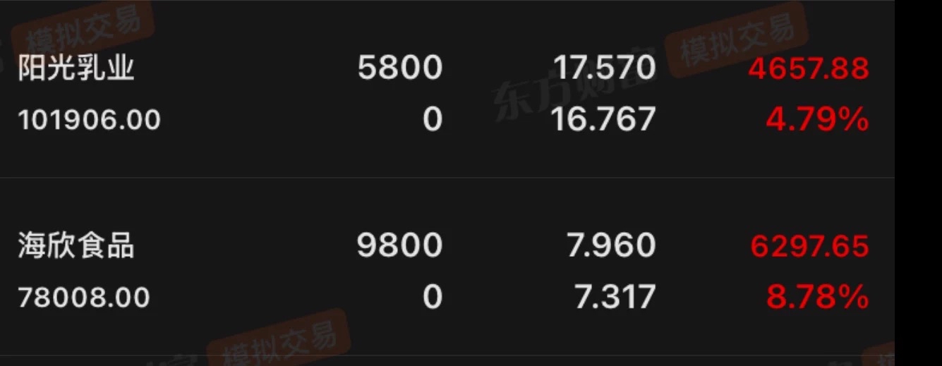 $阳光乳业(SZ001318)$ 模拟盘一抓一个准