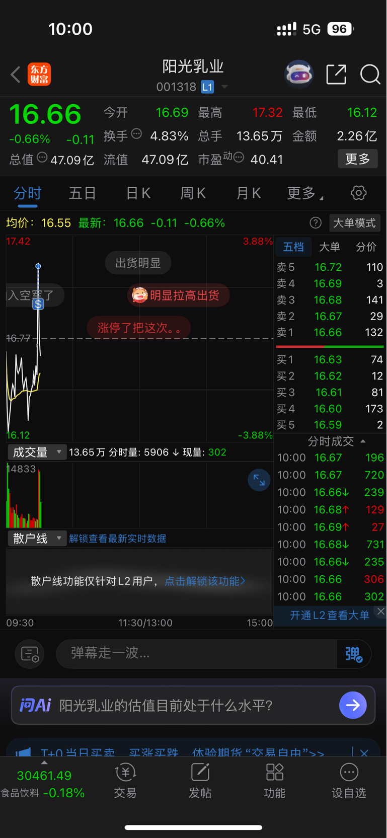 $阳光乳业(SZ001318)$ 冲高点卖了,留下的发财
